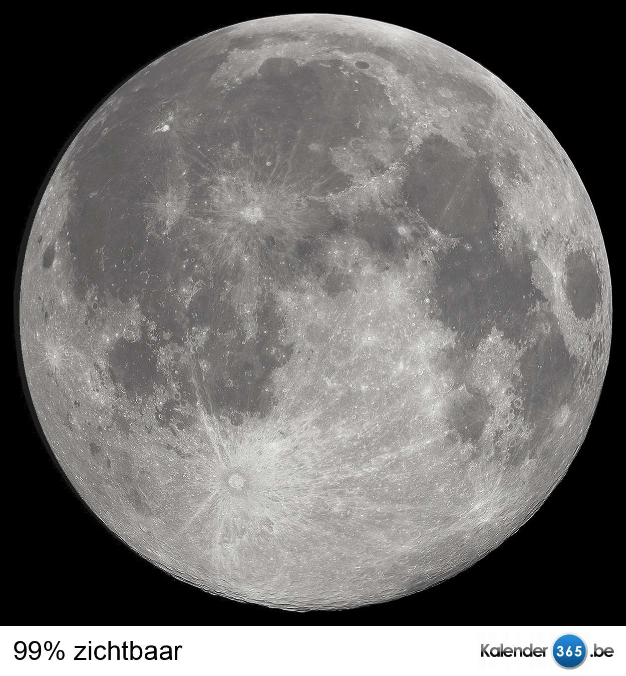 Bekijk hier de actuele stand van de maan. Het percentage dat de maan zichtbaar is staat vermeld onder de afbeelding.